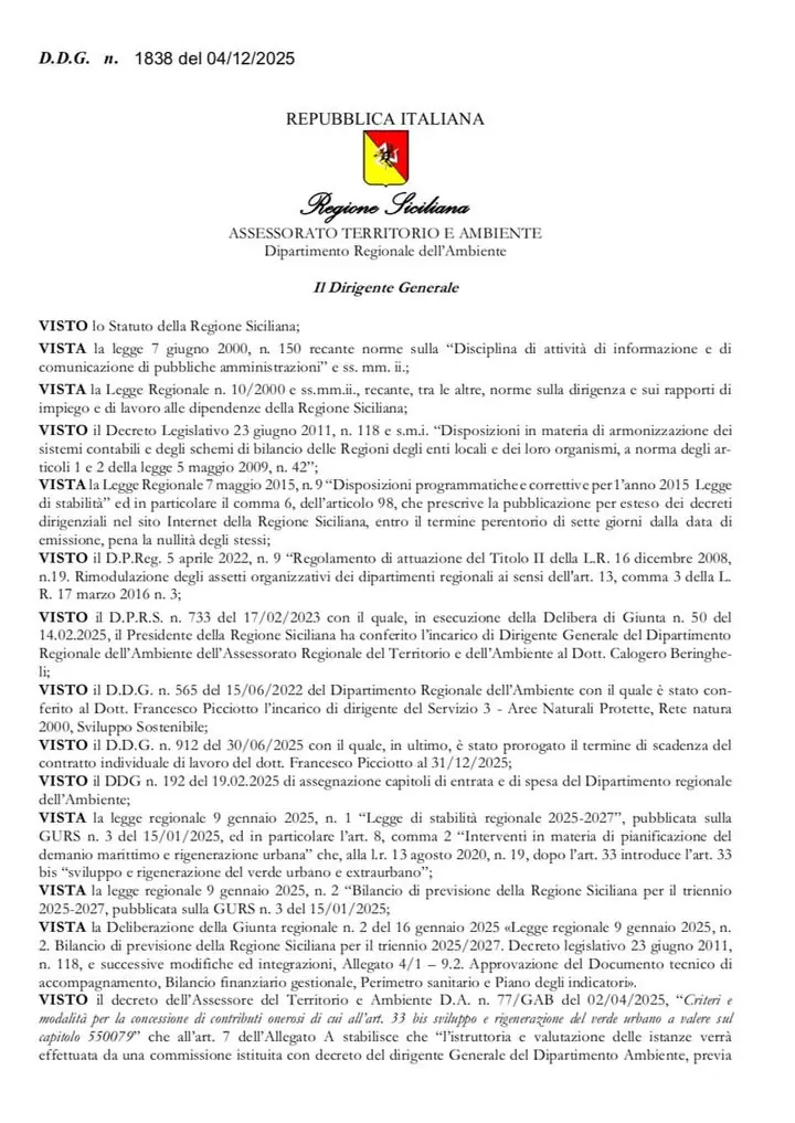 ๐๐ป Finanziamenti a Piraino ๐๏ธ ๐ท Il Comune di Piraino tra i 70 Comuni siciliani ammessi a finanziamento con DDG n. 1838 del 04/12/2025 dellโAssessorato Regionale Territorio e Ambiente, nellโambito dellโAvviso pubblicato con D.A. n. 77/GAB del 02/04/2025 per la concessione di contributi per lo svilupp